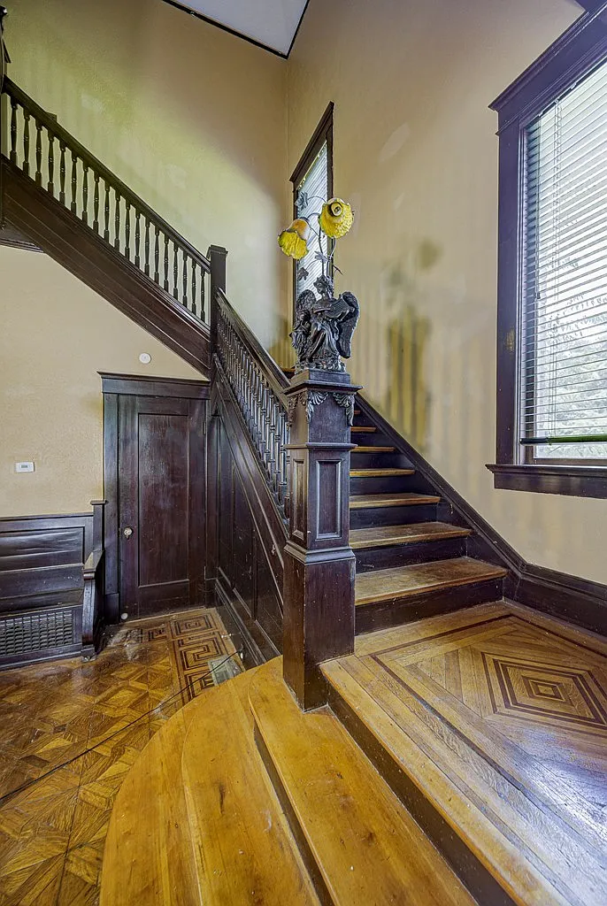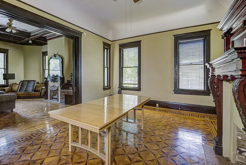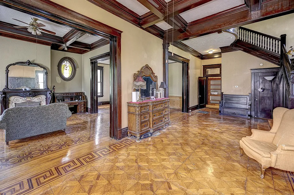 These intricately arranged wood patterns are not only visually striking but also a testament to the level of detail and care that went into the home’s construction. Each step across these floors echoes a tradition of artistry that is increasingly rare in modern building practices.