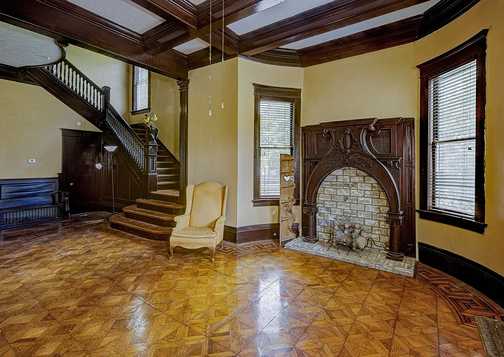 Rather than repeating a single motif, the mantels vary in style and ornamentation, suggesting that each space within the home was given its own identity. This thoughtful approach to design elevates the residence beyond mere functionality, transforming it into a living gallery of early 20th-century decorative arts.